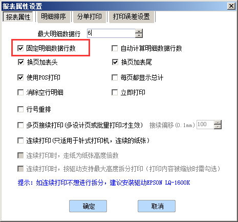 圖片中所示的最大明細行具體錄入多少,需要根據客戶實際的紙張大小來決定。通過判斷一張大概能打印多少數據去調整到最佳的行數即可。