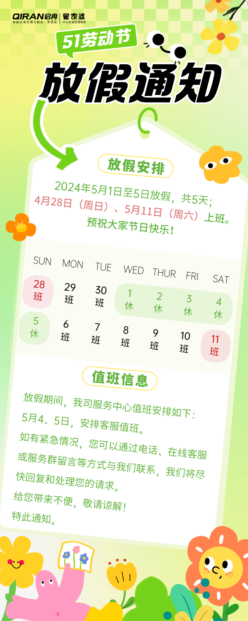 公告 | 啟冉軟件勞動節(jié)放假通知